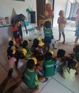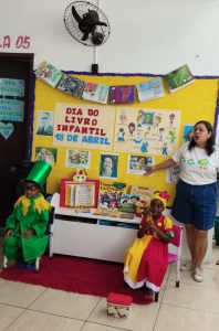 A programação foi marcada por momentos de leitura, contação de histórias, dramatizações e diversas atividades lúdicas e pedagógicas que estimularam a imaginação, a criatividade e o gosto pela leitura desde a primeira infância. Durante as ações, os pequenos puderam vivenciar histórias de forma interativa, participando de encenações, explorando personagens e desenvolvendo habilidades importantes como a oralidade, a socialização e a expressão corporal.