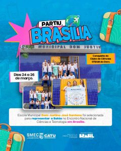 Duas estudantes da rede municipal de ensino de Catu irão representar a Bahia em um importante evento nacional voltado para ciência, tecnologia e inovação. As alunas Ana Julia Simão e Maisa Santos, ambas com 14 anos e estudantes do 9º ano da Escola Municipal Dom Justino José Santana, foram selecionadas para participar do Encontro Nacional de Ciências e Tecnologia, que acontecerá entre os dias 24 e 26 de março, em Brasília.